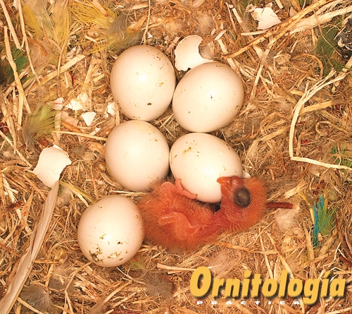- Una vez estemos seguros de que la pareja se tiene mutua confianza, pondremos juntas ramitas de sauce o de otra especie de leña blanda, que utilizarán, junto con las plumas, para rellenar el nido. En este punto, la pareja se retirará al nido e iniciarán sus acoplamientos. Las puestas suelen ser generalmente de 4 huevos, en 2 o 3 días, cuya incubación dura alrededor de 23 días.