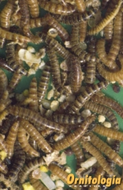 La alimentación de los jóvenes destetados es la misma que la que reciben los padres, pero suministrándoles además, dos veces al día, pasta al huevo y con mijo en espigas siempre a su disposición.