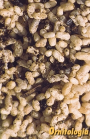 Suministro esta mezcla dos veces al día durante el periodo de reproducción, la primera, hacia las ocho de la mañana y la segunda, alrededor de las seis de la tarde. Fuera del periodo reproductivo, sólo les suministro este preparado dos veces a la semana. La dosis: lo que los pájaros puedan consumir en una hora.